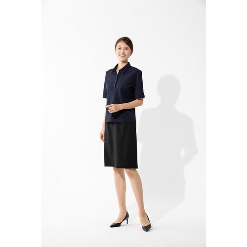 PBT繊維を使用したストレッチ性に優れた生地を使用しています。エコマーク、グリーン購入法対応のエコ素材採用し、ストレッチ、UV、遮熱、抗菌防臭加工など多機能を装備したポロシャツです。 |