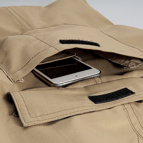 3Sサイズは女性シルエットです。カーゴポケットはマジックテープ仕様です。キーやキーチェーンが取り付けらツインループ仕様です。右側カーゴポケット上にファスナー付きポケットもあります。 |