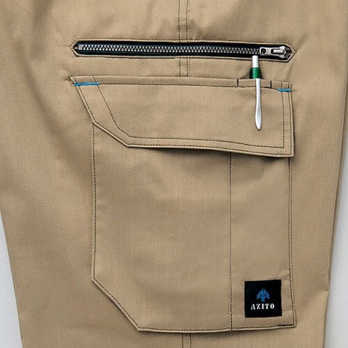 カーゴポケットはマジックテープ仕様です。キーやキーチェーンが取り付けらツインループ仕様です。右側カーゴポケット上にファスナー付きポケットもあります。 |