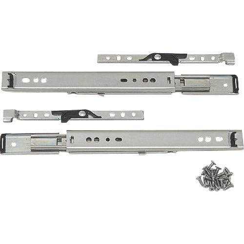 インナーメンバーを完全に引き出せる3段引のスライドレールです。ドロワーレールの使用によりワンタッチでレールの脱着ができます。レールを全閉にした時、簡易的にその状態を保持します。 |
