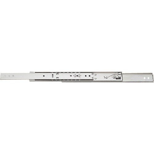 インナーメンバーを完全に引き出せる3段引のスライドレールです。レールを全開にすると、全開状態で固定されます。レバー操作で解除します。レバー操作でインナーメンバーを取り外せます。 |