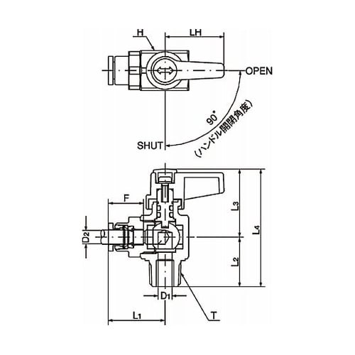 ボールバルブ プッシュワンタイプ(アング