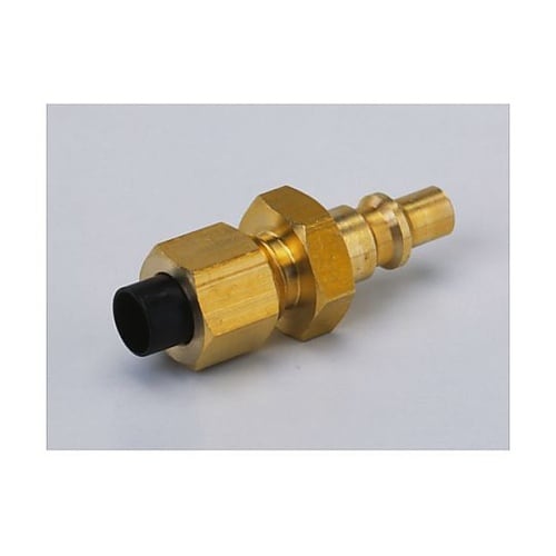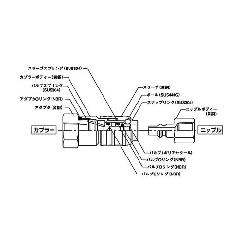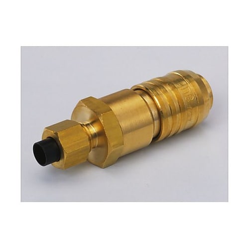 プッシュ・トゥ・コネクト方式です。カプラー側とニップル側の接続は、押し込むだけのワンタッチ接続です。カプラー側に自動開閉バルブを内蔵しています。 |