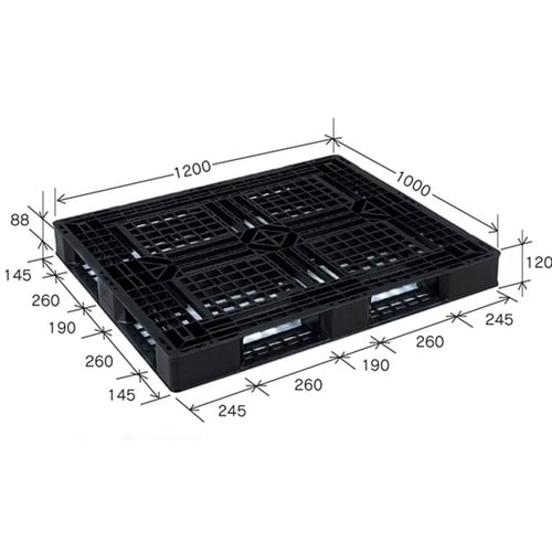 岐阜プラスチック工業 リスパレット JLタイプ タイプ:片面使用型(D−デッキボードタイプ)(裏・穴)外寸(mm):1200×1000×120 JL−D4−1210E ブラツク 1個 A01X-2063