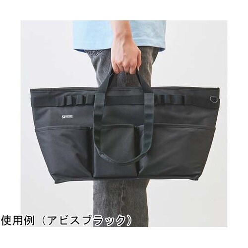軽くてしっかり自立する大容量のバッグです。ペンや工具などを取り付けられるベルトです。取り出しやすいアウターポケットです。内側には仕切りファスナーポケット付きです。 |