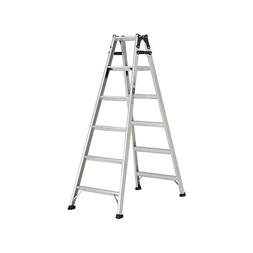アルミ合金製安全性を向上させた業務用はしご兼用脚立両面ワイドの60mm幅広踏ざん採用で作業効率が大幅に向上します。補強金具により強度と耐久性が向上しました。 |