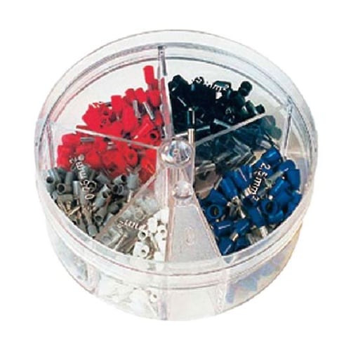 いろいろなサイズが入ったキット品です。ポリプロピレン製の絶縁スリーブの色はドイツの規格(DIN)に準じています。ファネル挿入になっているため電線の挿入が簡単です。 |