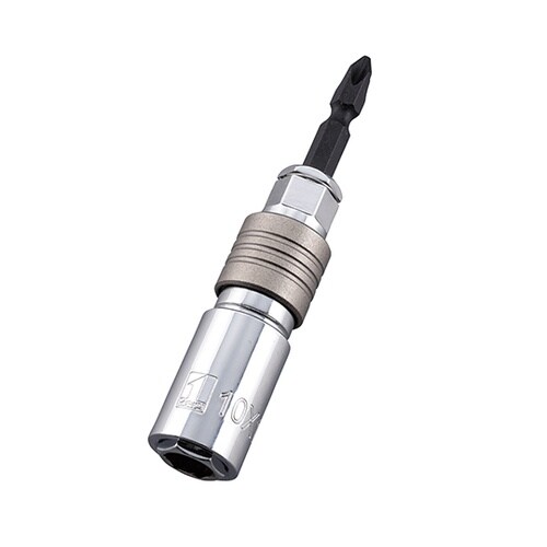 ビットが折れても市販のドライバービットに交換でき、ソケットの寿命まで使用できます。ソケットを寿命まで使えるビット交換式です。使用頻度の高い2つのサイズを内蔵しています。 |