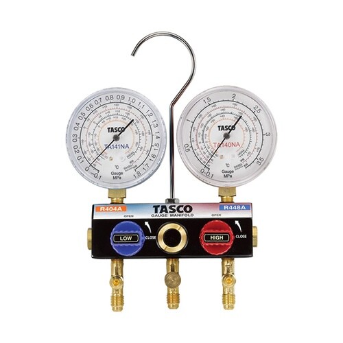 タスコ ハイブリッドゲージマニホールドキット 150cmバルブ付チャージホース R448A・R449A・R404A TA124ZAV−2 1セット A01X-6058
