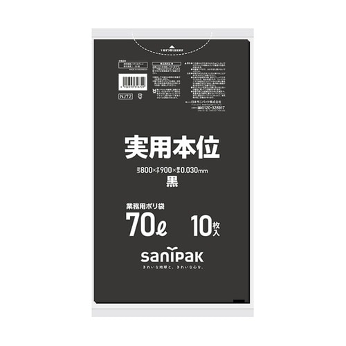 日本サニパック 業務用ゴミ袋 実用本位 70L 黒 10枚×40冊入 NJ72 1ケース A01X-6488