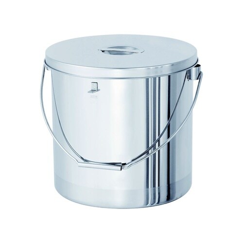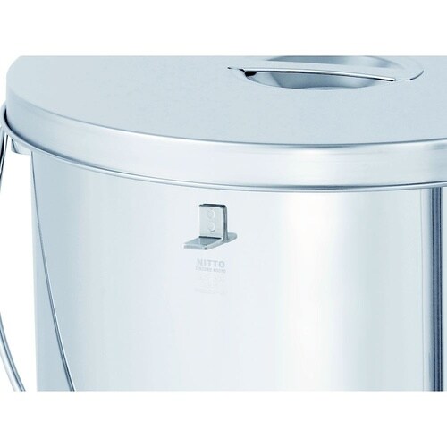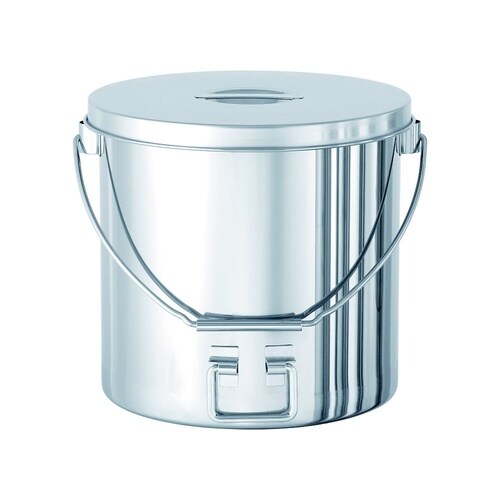 かぶせ蓋付きのステンレス容器。「投入ブラケット」と「下部取っ手」が中身を投入する動作をサポートします。ツル(吊り下げ用の取っ手)と下部の取っ手を掴み、容器を楽に傾けられます。 |