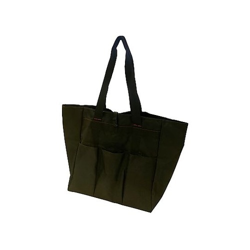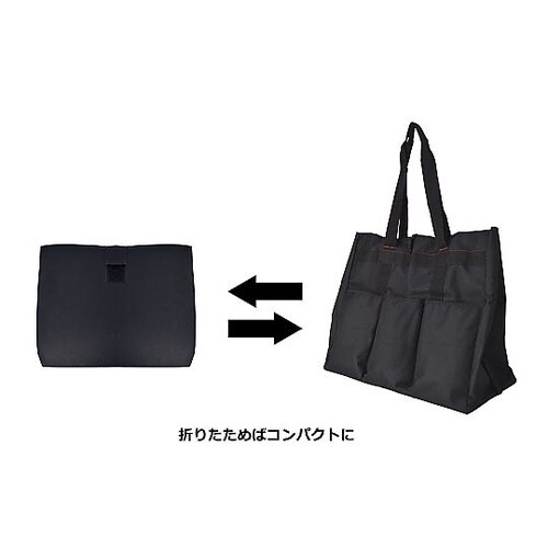 内面は撥水加工が施されています。肩掛けできて持ち運びしやすいです。補強板入りで丈夫です。折り畳んでコンパクトに収納できます。外側にポケットが3つ付いてます。 |