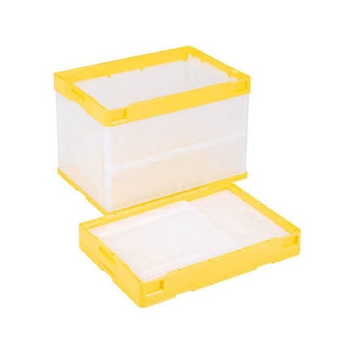 折りたたみコンテナです。側面は透明です。容量:60リットルです。不要な時は折りたたみ、省スペースで保管に。※組立てる際は、短側面が底面に噛みあっていることを確認してください。 |