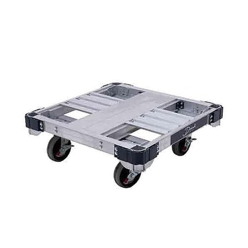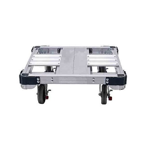 単管挿入ブラケットあり(4ヶ所)4輪キャスタータイプのアルミ製平台車。スタッキング可能で収納場所もとりません。 |
