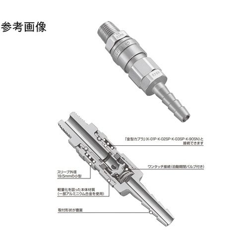 ハンドツールの手元接続に適した軽量設計。軽量化のため一部本体材質にアルミニウム合金を採用しています。プラグ・ソケットの接続は、押し込むだけのワンタッチ接続。 |