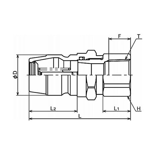 超高圧用として04ー08サイズまでは70.0MPaまで保持。着脱時の空気混入量と流体のこぼれ量が少ないフラッシュバルブ機構を採用。着脱操作が簡単な押し込むだけのプッシュ・トゥ・コネクト方式を採用。 |
