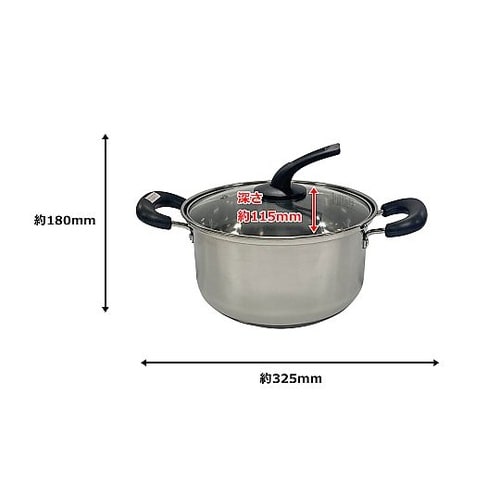自立するガラス蓋付きです。吹きこぼれにくい段付の形状です。蓋を裏返してコンパクトに収納できます。蓄熱性に優れた三層底です。 |