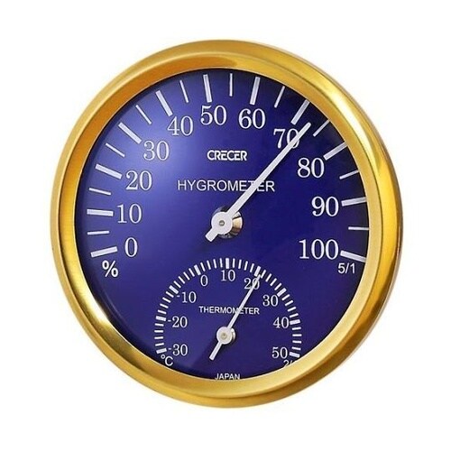直径67mmの小型な温湿度計です。背面に壁掛け用の穴があります。 |