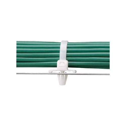 取り付けたい場所に穴をあけ、押し込むだけでしっかりと固定できます。結束バンドの固定。 |