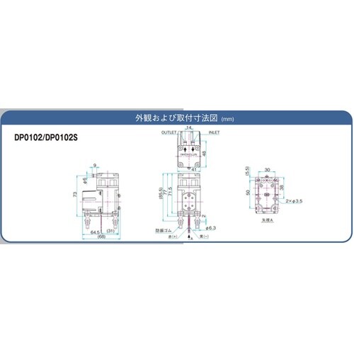 日東工器 DCモータ駆動ポンプ コンプレッサ・真空ポンプ兼用 −26.6ー45kPa 7L/min DC24V駆動 ブラシレスモータ ダイアフラム方式 DPシリーズ DP0102S−Y1 1台 A01Y-3743
