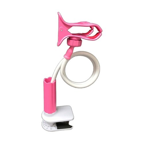 スマホをホルダーに固定することで、手に持たずに長時間楽しむことができます。フレキシブルアームとボールヘッドを動かすことで、目線に合わせた調整が可能です。 |