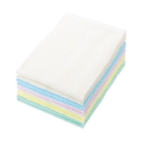おしぼりにも使えるタオルふきん。肌触りのいい綿100%。衛生管理に役立つカラーアソート。 |