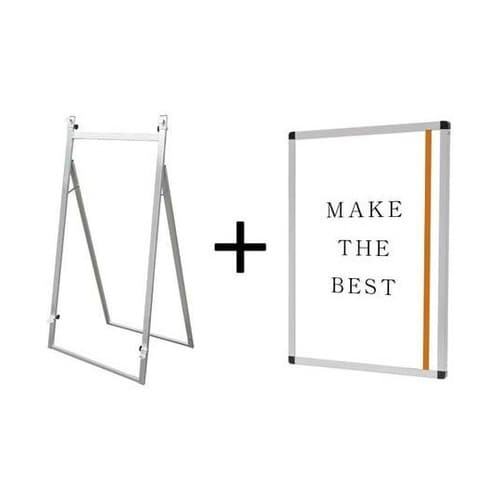 【ポスターの交換方法】▼ポスターの交換は、本体上部の左右にあるビスを取り外し、上辺のフレームを引き抜いてアルミ複合板とアクリルカバーの間にポスターをセットするだけです。 |
