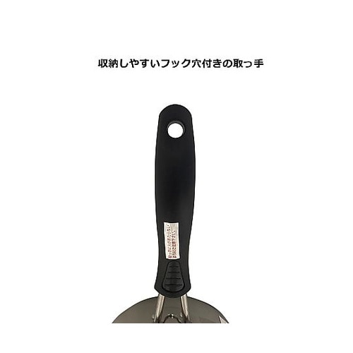 自立するガラス蓋付きです。吹きこぼれにくい段付の形状です。蓋を裏返してコンパクトに収納できます。蓄熱性に優れた三層底です。 |