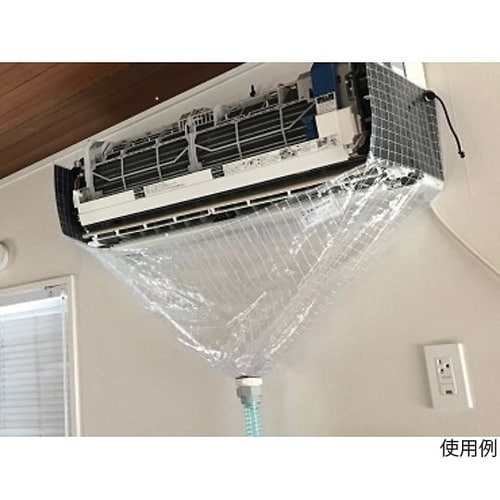 前面オープン型、脱着式ホース、丈夫なメッシュ素材で究極のエアコン洗浄シートです。ゴムとストッパーで簡単に装着できます。 |