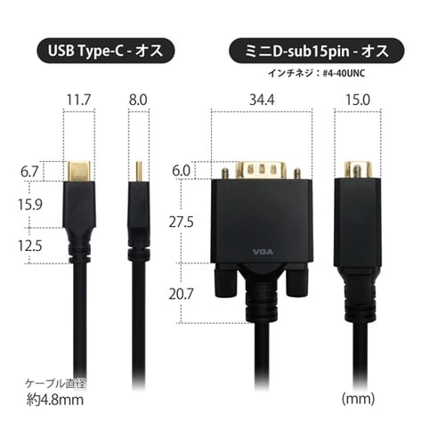 USB Type−C→VGA 変換ケーブル 10m UCVG100−758BB 1本