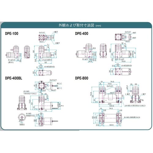 日東工器 DCモータ駆動液体ポンプ 0ー100kPa 100L/min DC24V駆動 ブラシ付きモータ ダイアフラム方式 DPEシリーズ DPE−100−2E−Y1 1台 A020-2580