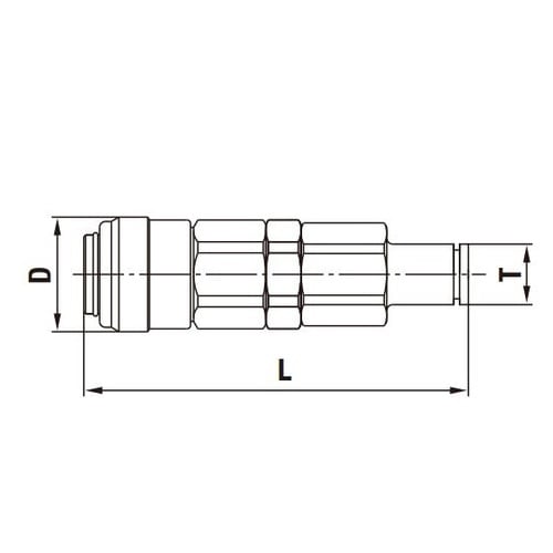 ハンドツールの手元接続に適した軽量設計。軽量化のため一部本体材質にアルミニウム合金を採用しています。プラグ・ソケットの接続は、押し込むだけのワンタッチ接続。 |