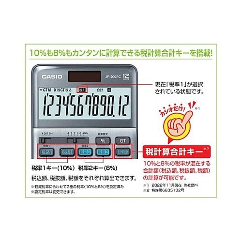 軽減税率電卓「W税率」&「税計算合計」機能を搭載!10%と8%が混在する税計算に対応します。 |