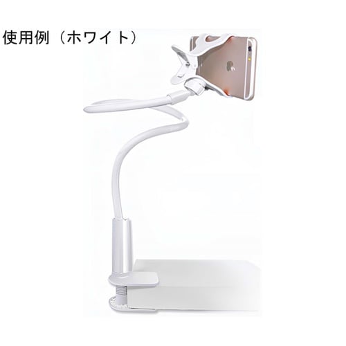 スマホをホルダーに固定することで、手に持たずに長時間楽しむことができます。フレキシブルアームとボールヘッドを動かすことで、目線に合わせた調整が可能です。 |