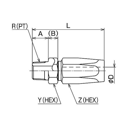タイプ:A | 材質:スチール | 呼称サイズ:6 | ねじ径:R3・8 | A(mm):15 | B(mm):9 | 最小内径D(mm):7 | L…