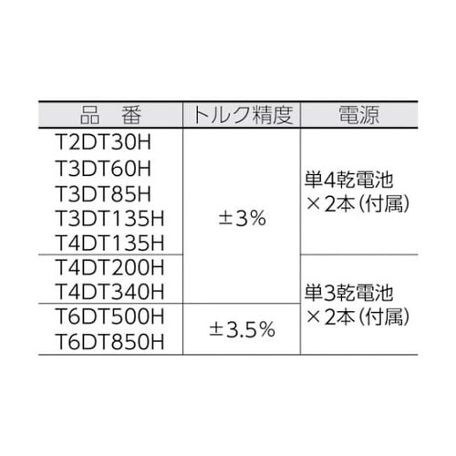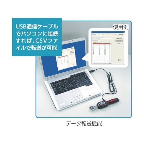 あらかじめ設定したトルク値に対して、LEDランプ、ブザー音と液晶表示で締付け状況をお知らせします。測定したトルク値を最大250件保存可能です。 |