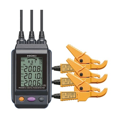 被覆電線を挟むだけで、素早く三相電源の確認・検査完了金属非接触で電圧測定ワイヤレスアダプタZ3210(オプション)に対応。 |