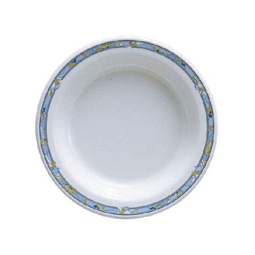 使い勝手の良い深主菜皿。帯状にアレンジされたブルーの花が小粋な印象です。リムがあって持ちやすく、スタッキング性抜群です。別売のフードカバー「F−15」がご利用いただけます。 |