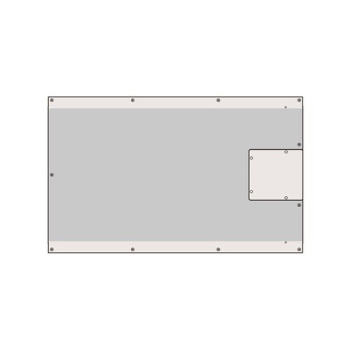 RSRシリーズ用の天板です。高い開口率(約76%)のパンチング穴が開いています。天井配線ができるように配線穴(蓋付)を設けています。
