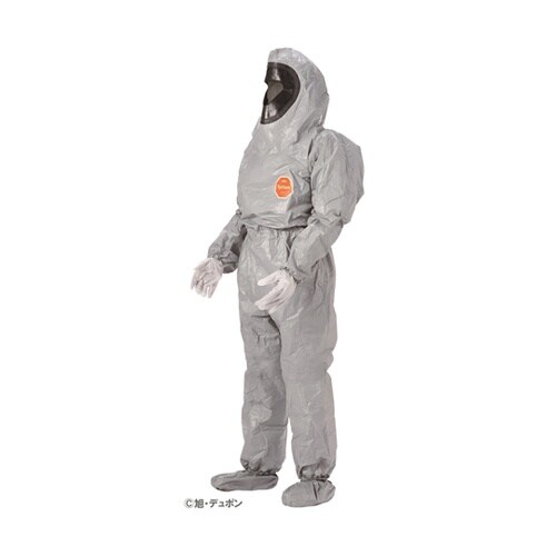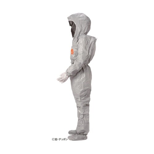 タイケムR6000の生地を使用しており、多くの有機化学物質および高濃度無機化学物質に対する防護性能を有した防護服です。フード開口部周りがゴム仕様となっており、全面形マスクとのフィット性を高めます。 |