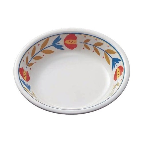 南欧の明るい太陽の薫りのするカジュアルな器です。盛り付け面の境目がないので少量から多量まで盛りやすいです。元気で明るいイメージの絵柄です。 |
