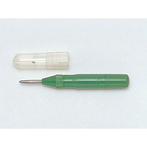 先端に超硬チップを埋め込んだ自動センターポンチ。強く押しつけるだけでスプリングが動き、叩かずにマーキングができます。 |