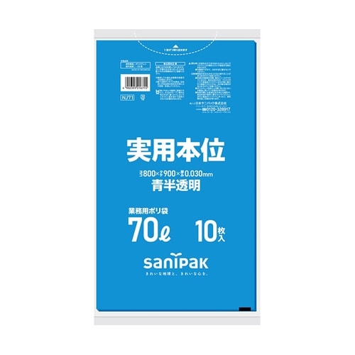 日本サニパック 業務用ゴミ袋 実用本位 70L 青半透明 10枚×40冊入 NJ71 1ケース A021-2855