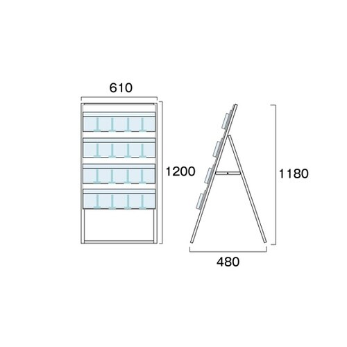 ※パンフレットケース1段に付きスライド仕切り板4枚付属しております。
