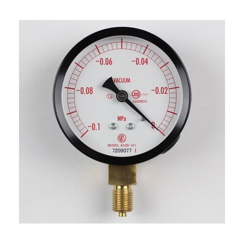 大きさ(mm):Φ75 | 形状(取付):立形A枠 | 接続:G1・4B | 材質:黄銅 | 性能:ナシ | 圧力レンジ:MPa_−0.1〜0 | 精…