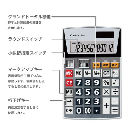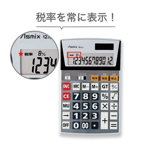 税率表示LCDを備えた便利なビジネス電卓。 |
