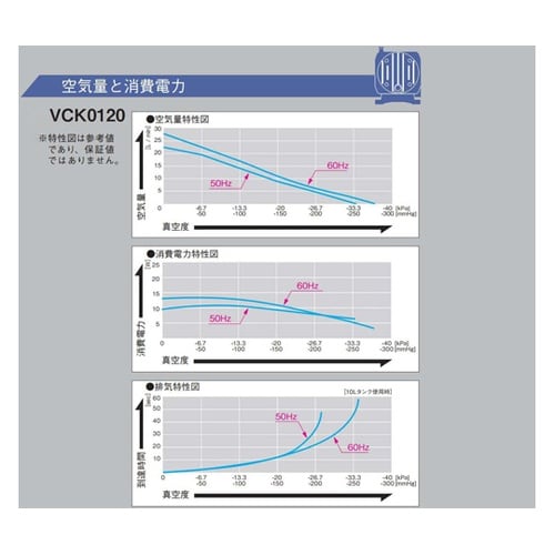 日東工器 ダイアフラムポンプ 真空ポンプ専用 到達真空度−26.7kPa 18L/min AC100V駆動 50/60Hz兼用 ダイアフラム方式 VCシリーズ VCK0120 1台 A021-6482