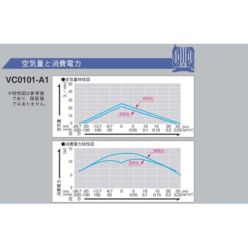 日東工器 ダイアフラムポンプ コンプレッサ・真空ポンプ兼用 −18.7ー18kPa 10L/min AC100V駆動 50/60Hz兼用 ダイアフラム方式 VCシリーズ VC0101−A1 1台 A021-8159