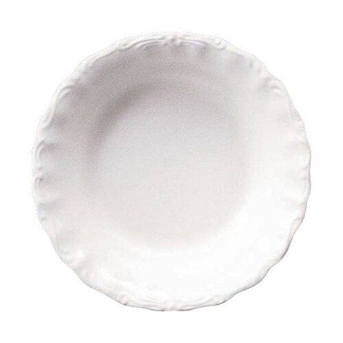 花冠のレリーフに落ち着きのあるレトロな色合いが印象的。温かみがあり上品なフレンチカントリー調です。少量盛り付けでも見栄えする形状です。リムがあるので持ちやすい形状です。スタッキング性抜群です。