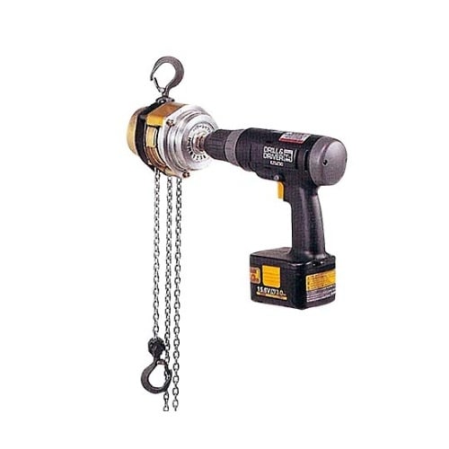 専用パワーシャフト(1.5m)に充電式電動ドライバーをつなぐだけで、遠隔操作による電動の巻上げ・巻下げ作業が手軽に行えます。 |